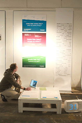 für eine visionäre Doppelstadt Die Arbeit ist ein fiktives Erscheinungsbild einer visionären Doppelstadt an der ostdeutschen Grenze zu Polen. Das Ergebnis stellt ein politisches Signal an die Bürger beiderseits des Flusses dar, offensiv mit ihrer Nachbarschaft umzugehen. Ausgehend von Betrachtungen zur Stadtidentität und zu bestehenden kommunalen Erscheinungsbildern wurde eine Idee einer sinnvollen Zusammenarbeit zweier Kommunen über Ländergrenzen hinweg entwickelt. Dafür wurden u.a. Kommunikationsmittel erarbeitet, die die Pobleme der kulturell und sozial unterschiedlichen Kommunen aufgreifen.