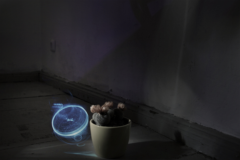Christopher Warnow nimmt in der »Arbeit From Augmented to Enchanted Reality« anleihen in der Sehstrahltheorie Pythagoras’ um eine andere Sichtweise auf aktuelle Augmented Reality Tendenzen herauszuarbeiten. Laut jener antiken Auffassung sendete das Auge heiße, unendlich schnelle Lichtstrahlen aus, die von den Dingen reflektiert wurden. So entstand das Abbild. Wenn das Auge der Projektor ist, kann der Bogen schnell zu den prozeduralen Projektionen Warnows geschlagen werden. Wenn die Lichtstrahlen durch die mit Informationen gefüllte Glasscheibe des IPhones hindurch in das passive Auge treffen (Augmented Reality), können umgekehrt auch digitale Bilder in die Welt projiziert, oder genauer, injiziert werden. Eigene Wünsche, Träume, und Hoffnungen können dann wieder veräußert werden. (Enchanted Reality)
