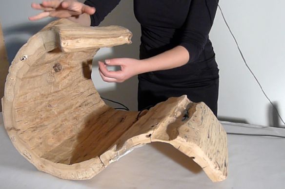 Das Hören und das Berühren sind Phänomene sinnlicher Wahrnehmung und Thema dieser Klanginstallation. Ein Aufsatz und ein Arbeitsjournal vermitteln weitere Aspekte. Positionen von Bernhard Waldenfels und Jean-Luc Nancy zum menschlichen Körper und dessen Weltverhältnis führen zu der Annahme, dass wir in einem Zusammenspiel der Sinne wahrnehmen. Inmitten dessen können wir uns dem Hören nicht entziehen und befinden uns immer schon in Resonanz zur uns umgebenden Welt. Indessen sind wir berührend berührt. Wenn nun der Holzkorpus berührt wird, wird dieser Klang akustisch verstärkt und durch Live-Audio Filter aufgefächert. Klang und Klangquelle spielen dafür weniger eine Rolle, als das Timbre - verstanden als eine Klangmaterie, als die Schwingung selbst, die uns …hörend …berührt.
