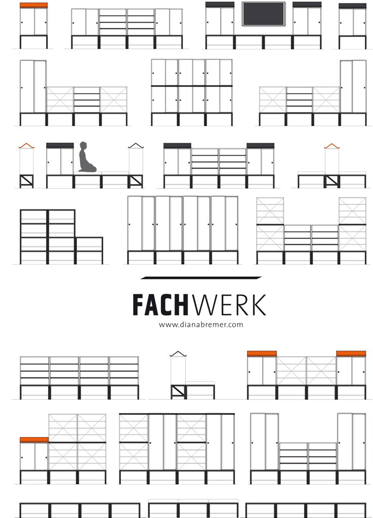 »Fachwerk« ist kinderleicht, ohne viel Aufwand und Kosten vor Ort und Zuhause individuell nach Bauplan aufzubauen und sieht dabei noch gut aus. Ein Möbel, das sich erweitert, sich den Ansprüchen des Nutzers anpasst, nicht statisch ist - zusammengefügt und erweiterbar wie ein Baukasten.