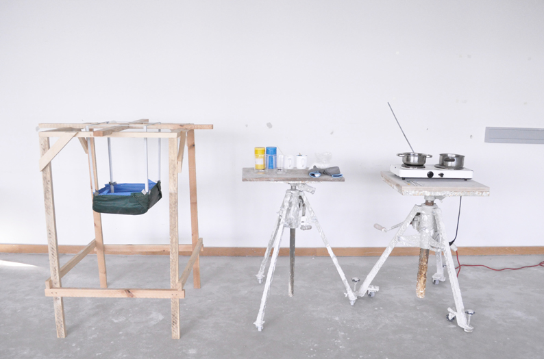 In einer Reihe von Betrachtungen, Experimenten und Objekten wird das Thema der hängenden Konstruktionen untersucht und dargestellt. Eine Methode die ihren Ursprung in der Architektur hat und hier auf experimentell Art ihre Anwendung im Produktdesign findet. Entstanden ist eine praktische Forschungsarbeit die das Aufhängen, Abhängen und auf den Kopf stellen dokumentiert.
