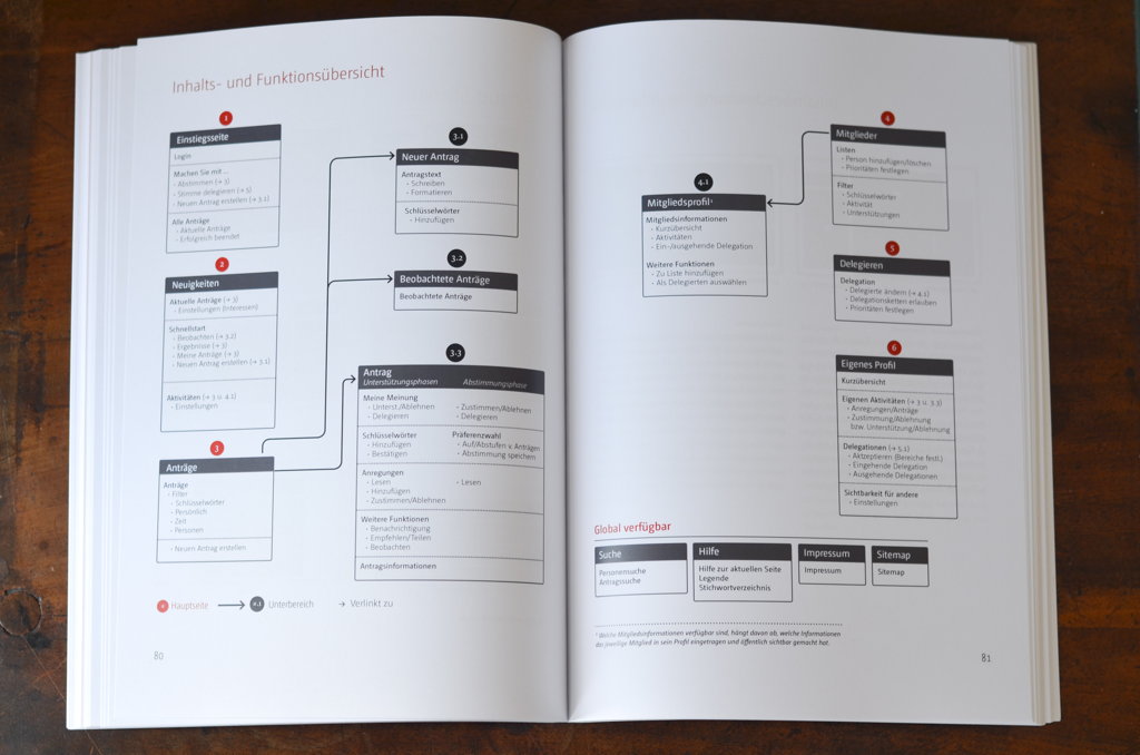 Der Schwerpunkt liegt hierbei auf der Erarbeitung und der Abstimmung politischer Entwürfe. Neben einer eingehenden Betrachtung der Vor- und Nachteile von Liquid Democracy wurde geprüft, welchen Anforderungen eine entsprechende Partizipationssoftware genügen muss und in welchem Zusammenhang eine Beteiligung von Bürgern, vor allem im politischen Kontext, Sinn machen kann. Zu diesem Zweck wurde die bestehende Software »LiquidFeedback« als Ausgangspunkt gewählt und hinsichtlich der Funktionalität analysiert. Anhand erkannter Probleme wurden Änderungen und Überlegungen zusammengetragen, die helfen können, die Software zu verbessern und benutzerfreundlicher zu gestalten. Das entwickelte Konzept bietet eine Alternative für zukünftige Versionen der Software und präsentiert eine verbesserte Gestaltungsoberfläche.