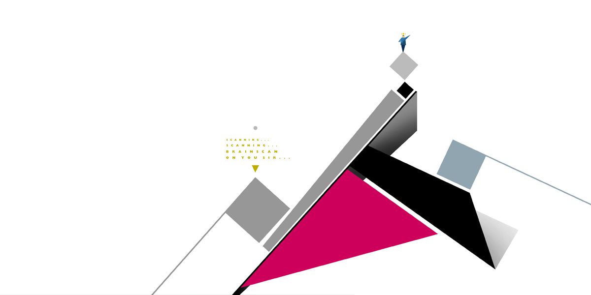 Der Mensch erfährt eine Transformation, deren stilistischer Verlauf, Figur > Fläche > Linie, sich durch die gesamte Arbeit zieht.