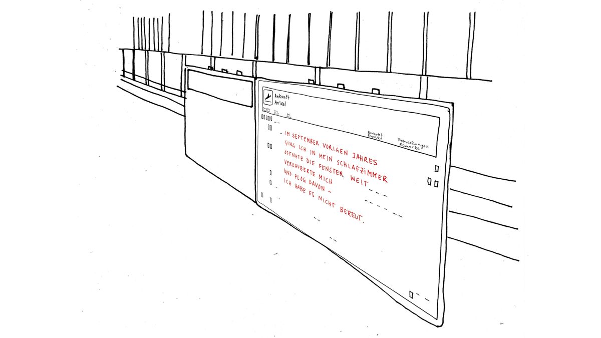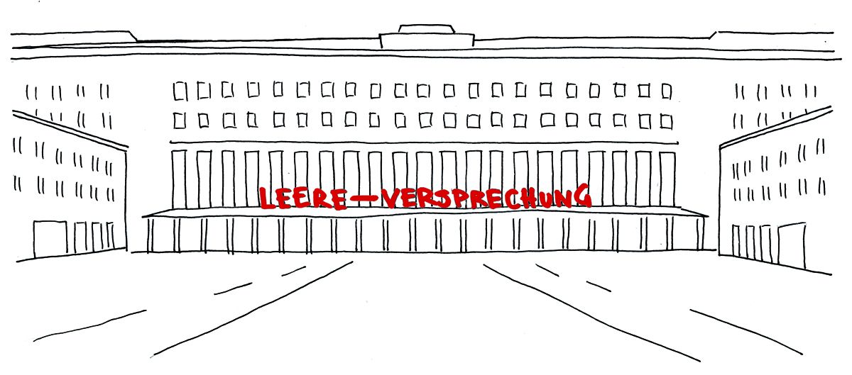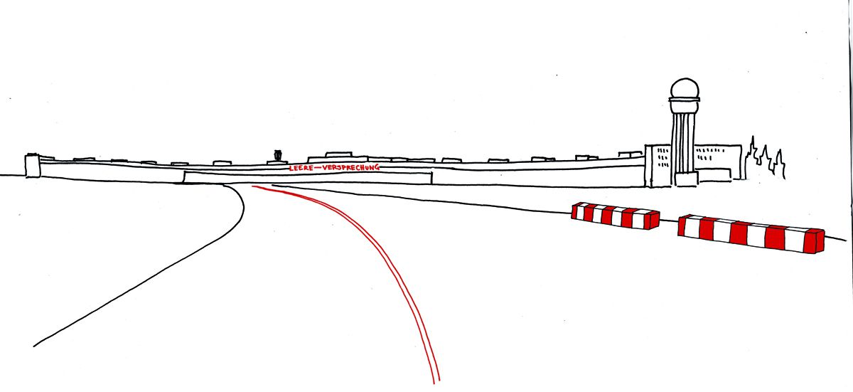 Der Konzeptteil, »LEERE VERSPRECHUNG«, ist ein kuratorisches Konzept für einen Ausstellungsparcours durch das Flughafengebäude, das mit Wahrnehmungsbrüchen, partizipativen Elementen und poetischer Kraft die Handlungs- und Gedankenräume an diesem Ort auslotet.