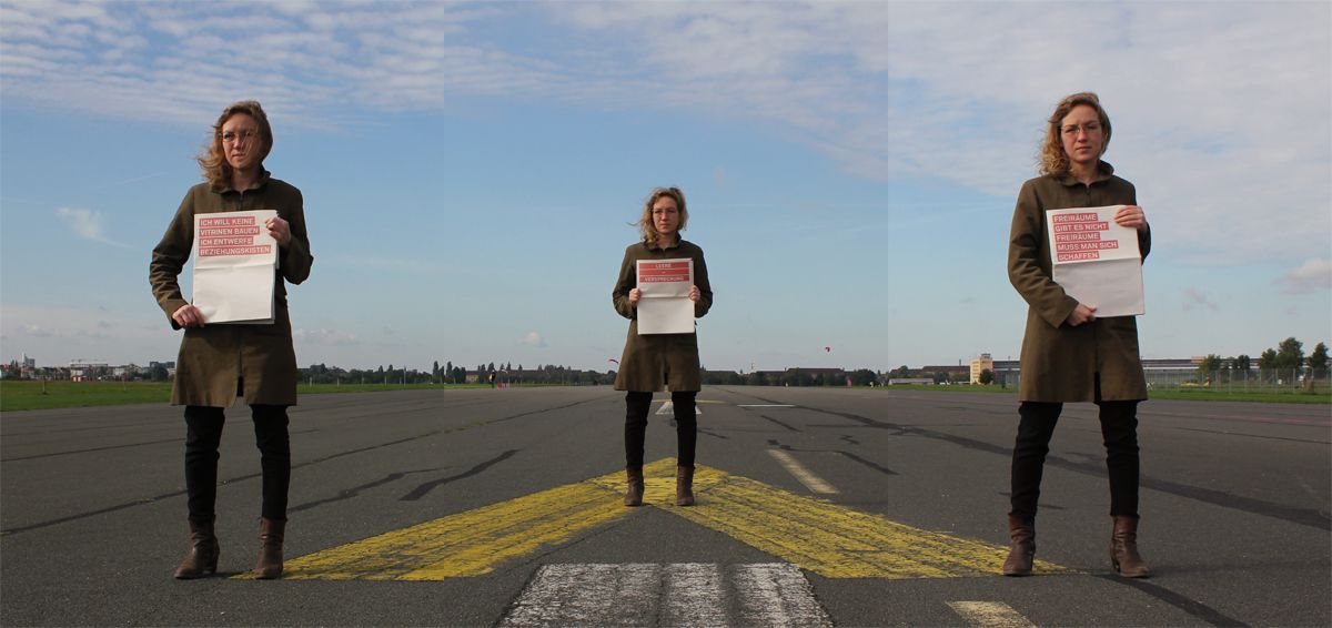 Der Kontextteil, »FREIRÄUME GIBT ES NICHT, FREIRÄUME MUSS MAN SICH SCHAFFEN«, behandelt die Geschichte Tempelhofs, die »Leere« und das damit verbundenen Zukunftspotential.