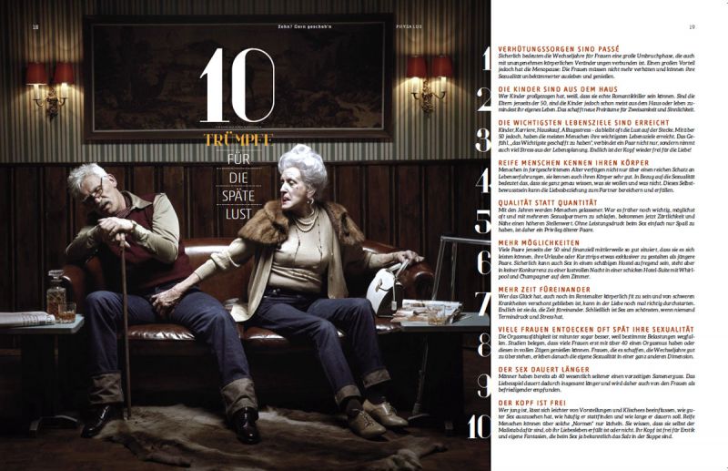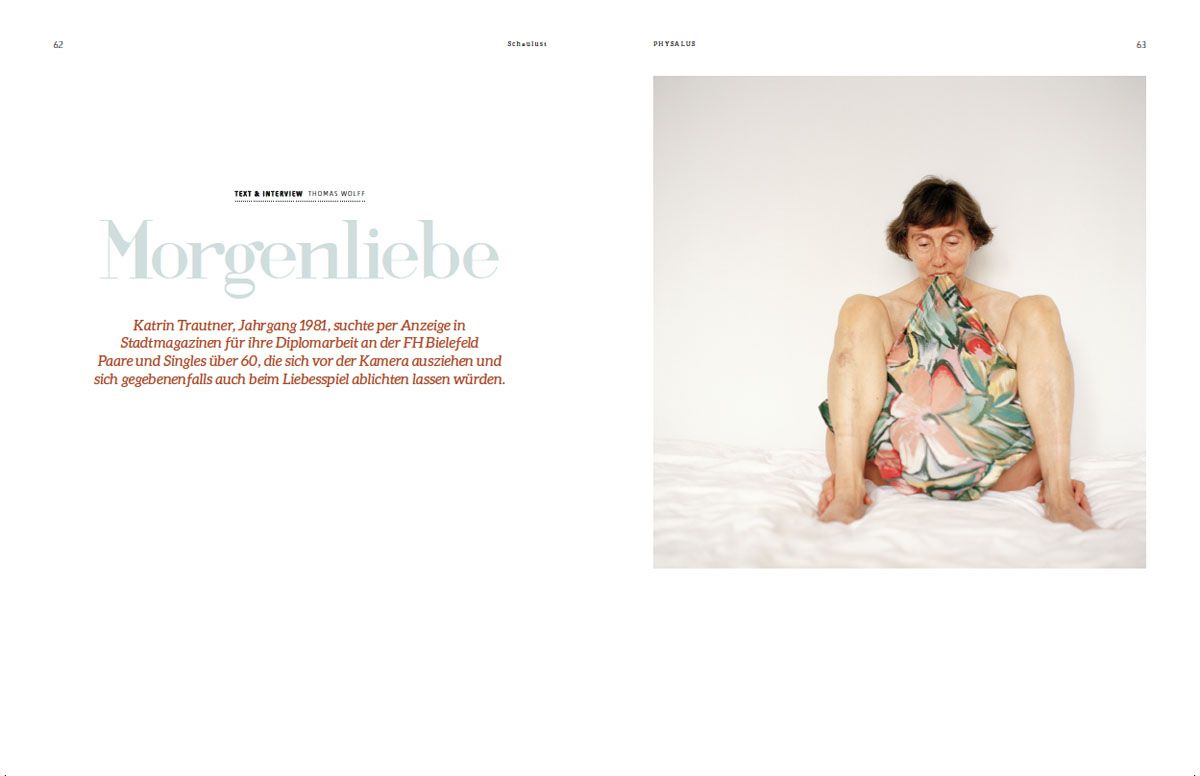 [...] Gebündelte Intimität die Zielgruppe 60+ im Visier als behutsame Annährung an ein Thema, welches keine flächendeckende Beachtung findet: Sexualität im Alter. Ein Magazin also, das sich einer Generation widmet, der es schwer gemacht wird, sich auszutoben ohne auf Ablehnung zu stoßen. Es nennt sich Physalus abgeleitet von der Frucht Physalis, die unter ihrer zerbrechlichen Pergament-Hülle, eine knackige Frucht mit eigenwilligem Geschmack verbirgt. Die Arbeit trägt einen Titel, der Körper (Physis) und Lust vereint und seinem Namen alle Ehre machen [...] sowie der späten Sexualität mit Sanftheit, Mut und Ehrlichkeit begegnen soll.