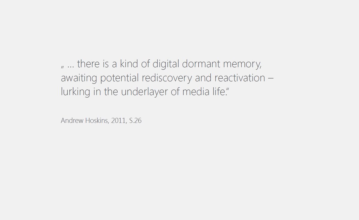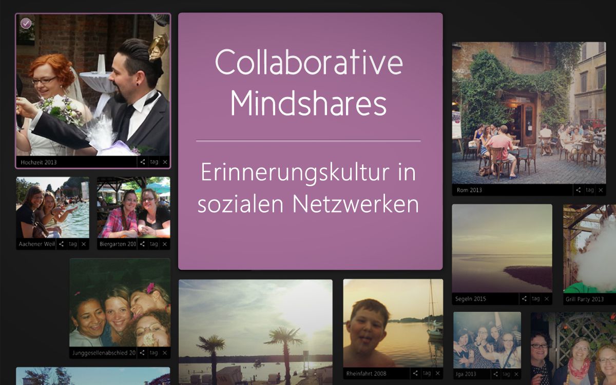 Das Konzept Collaborative Mindshares sammelt die wichitgen Erinnerungsstücke und stellt sie zu Geschichten zusammen. Die Erlebnisse bleiben erhalten und kommen je nach Assoziation des Nutzers immer wieder an die Oberfläche.