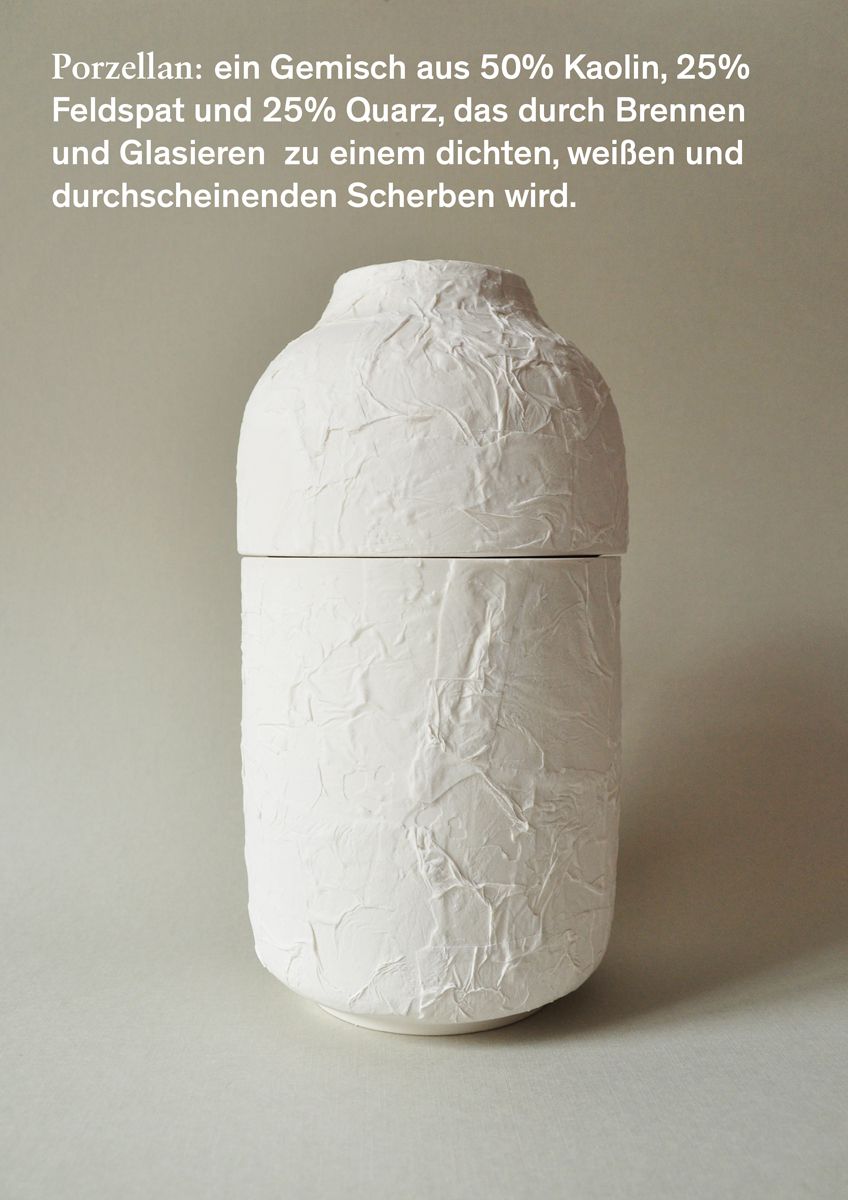 In den vergangenen Jahren gab es viele Entwicklungen in der Auseinandersetzung mit dem weißen, durchscheinenden Material, ausgehend von Künstlern und Designern. Dennoch haben wir häufig ein typisches Bild von blumenumrankten und goldumrandeten Tellern und Tassen in unseren Köpfen. Dies kann einerseits als Problem gesehen werden, andererseits aber auch als eine Möglichkeit, das Klischee vom verstaubten Tafelservice aufzubrechen. Mit dieser Arbeit soll deutlich gemacht werden, dass Porzellan an erster Stelle ein Material ist, das immer wieder neu entdeckt, verarbeitet und interpretiert werden kann.