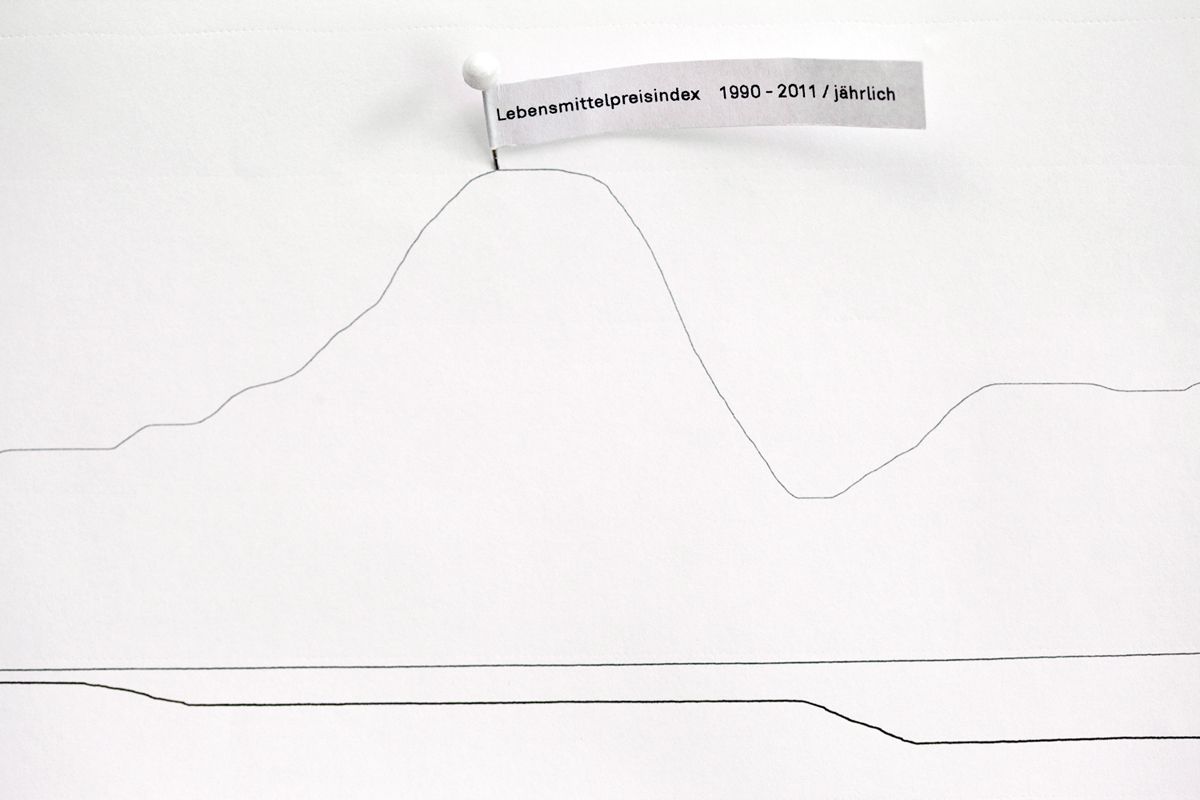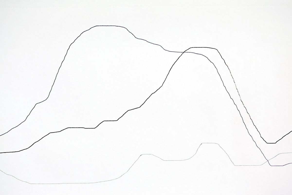 Ein Linienschreiber zeichnet die zeitliche Entwicklung von Werten nach, die ein möglichst breites Spektrum unserer Realität wiedergeben (Aktienkurse, Wasserstände, Bevölkerungsentwicklungen, den Puls des Betrachters, Anzahl von Sonnenflecken, Mondphasen,