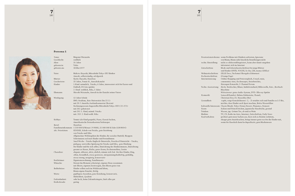 Entstanden ist ein 250-seitige Übersicht, die den japanischen Markt beschreibt. Enthalten sind dabei die gesellschaftlichen Unterschiede der japanischen Kultur zum bekannten europäischen Markt. In Japan sind die Ansprüche an Produkte durchaus Andere als in Europa oder westlichen Nationen. Auch die Voraussetzungen in japanischen Wohnungen und die Möglichkeiten für zum Beispiel Einrichtungsgegenstände unterscheiden sich sehr stark, ebenso wie der Designgeschmack.